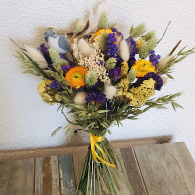 Bouquet petit nid d’oiseau au couleur est au fleurs naturellement colorées .