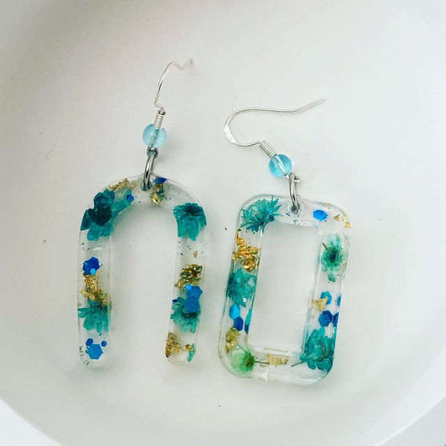Boucles d’oreille en résine, fleurs séchée et boucle en acier inoxydable